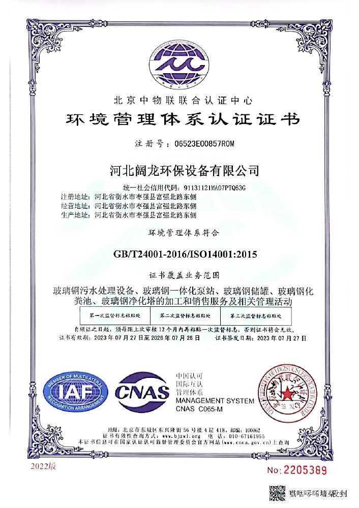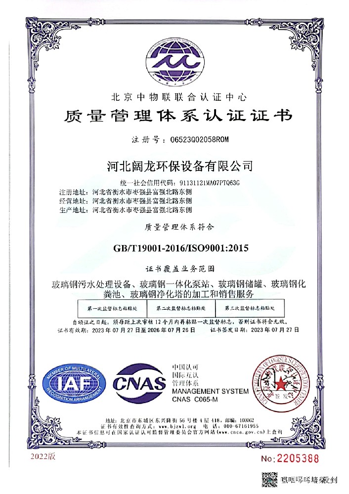 河北闊龍環(huán)保設(shè)備有限公司發(fā)祥于京畿之地、董子故里一一河北省棗強(qiáng)縣,位于環(huán)渤海經(jīng)濟(jì)圈和環(huán)首都經(jīng)濟(jì)圈的”黃金十字交叉處”,緊臨衡大公路、京九鐵路,距大廣高速10公里,地理位置優(yōu)越。設(shè)備先進(jìn),技術(shù)力量雄厚,能夠獨(dú)立進(jìn)行玻璃鋼環(huán)保系列產(chǎn)品的研發(fā)設(shè)計(jì)、生產(chǎn)和安裝維修服務(wù),已發(fā)展成為華北研發(fā)實(shí)力強(qiáng)、技術(shù)力量雄厚的玻璃鋼環(huán)保企業(yè)。公司產(chǎn)品主要有       玻璃鋼水處理系列:玻璃鋼一體化泵站,玻璃鋼生活污水提升泵站,一體化污水處理設(shè)備,       玻璃鋼除臭系列:玻璃鋼生物除臭設(shè)備,玻璃鋼污水池蓋板;       玻璃鋼容器系列:立式罐、臥式罐、運(yùn)輸罐、壓力罐、發(fā)酵罐、活性炭過(guò)濾罐、攪拌罐、加藥罐、玻璃鋼化糞池、現(xiàn)場(chǎng)纏繞大型罐等;       塔器系列:脫硫脫硝塔、氨氮塔、大型脫硫塔內(nèi)外件、除塵塔、活性炭吸附塔、酸霧吸收塔、臭氧接觸培、氨氮吹脫塔、生物除臭培、高能離子塔、氯化氫吸收塔等;       玻璃鋼管道系列:夾砂管道、頂管、高壓管、電纜···【詳細(xì)介紹】